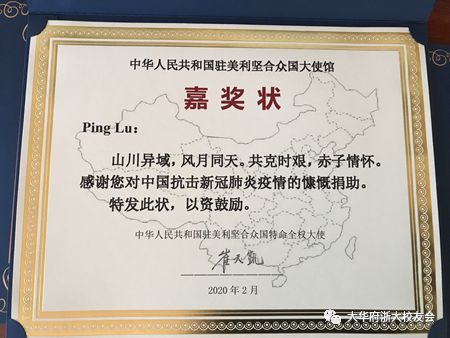 是啊,一百多年来,每逢故国有难,海外华人华裔都曾这样义不容辞,全力挺身而出,支援同胞。华府青年是海外第一家中学生自发捐款抗疫的组织,所有捐款已经通过全国青少年基金会国际青年交流中心办理了捐赠手续,全部捐款直接用于武汉的青年志愿者专项行动基金。这项活动得到了中国驻美大使馆的全力支持,驻美大使崔天凯特地为华府青年志愿者中每位捐款者签署颁发了个人证书。以大华府“浙二代”为代表的年青一代的行动力和视野真是令人赞叹,我们在他们身上看到了一种精神的传承和发展。